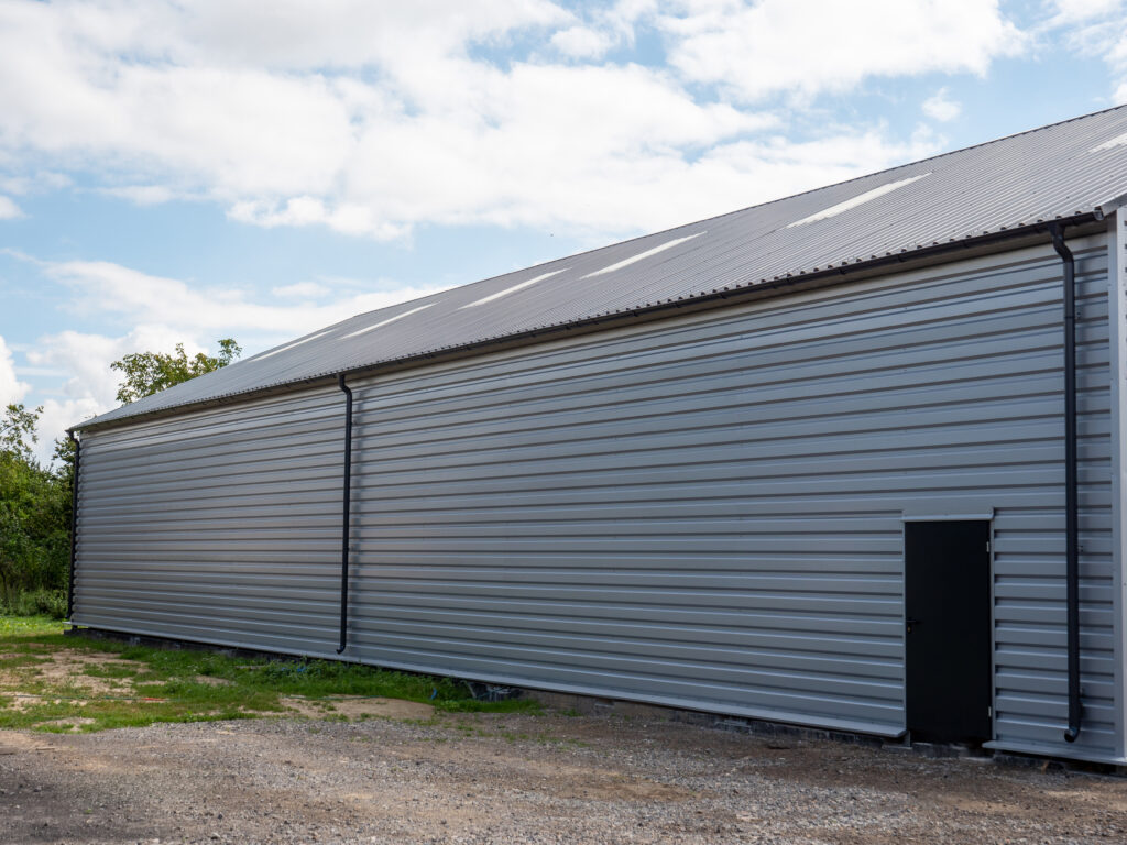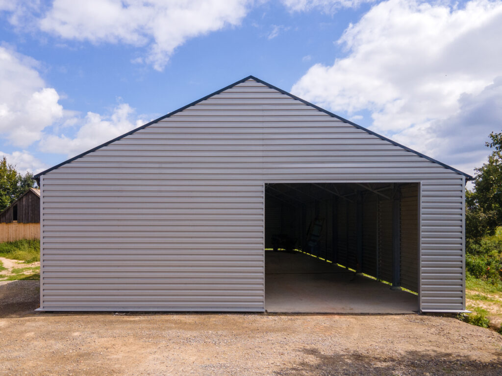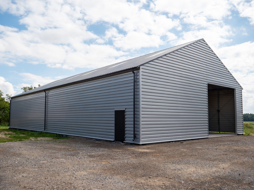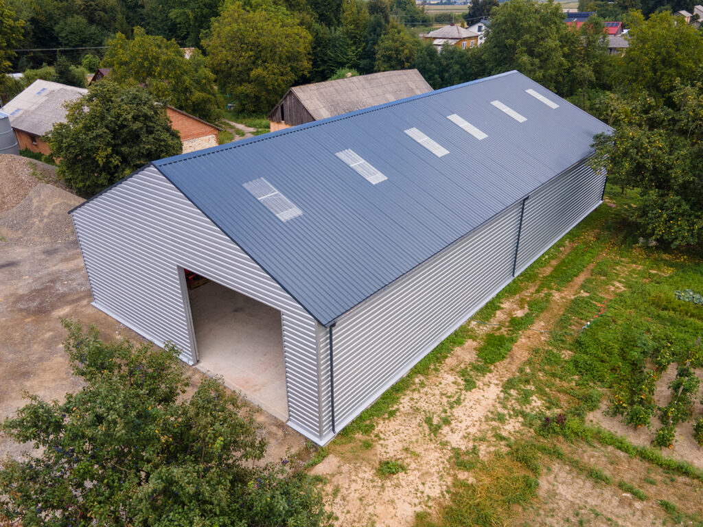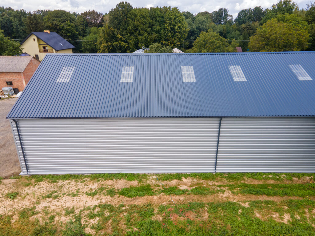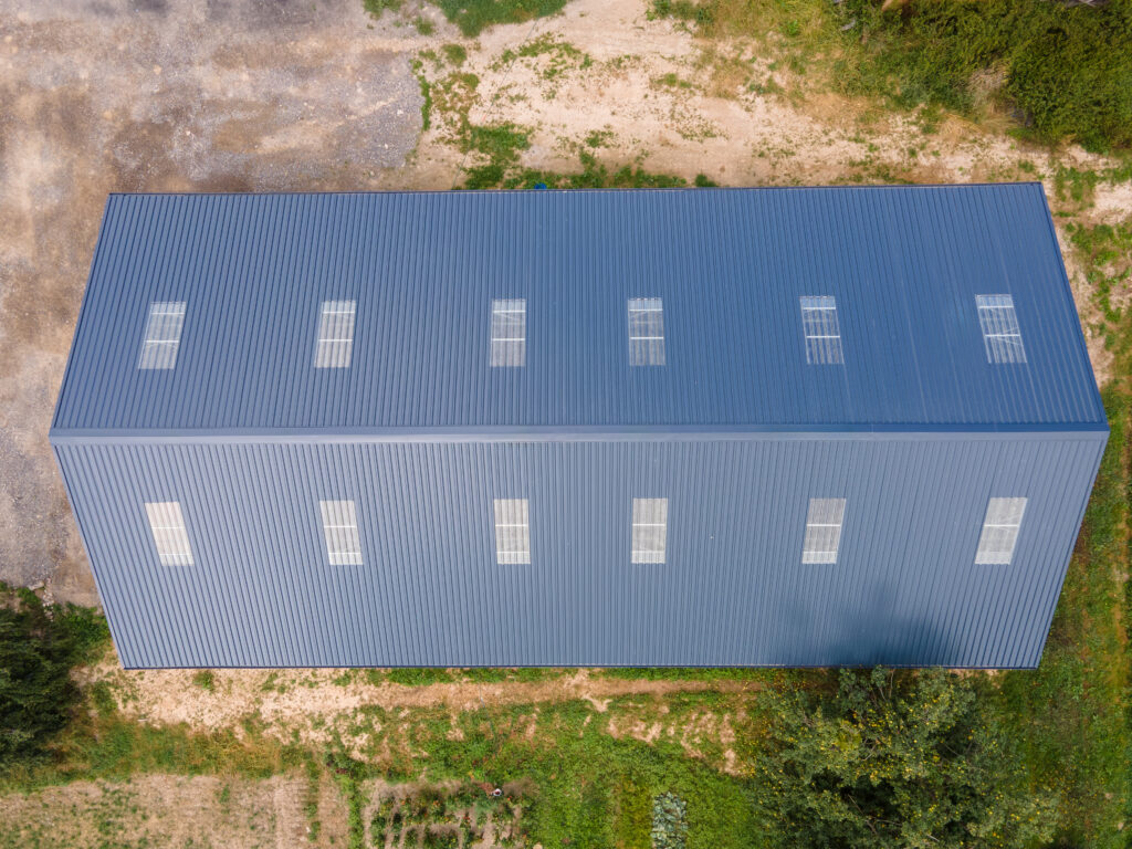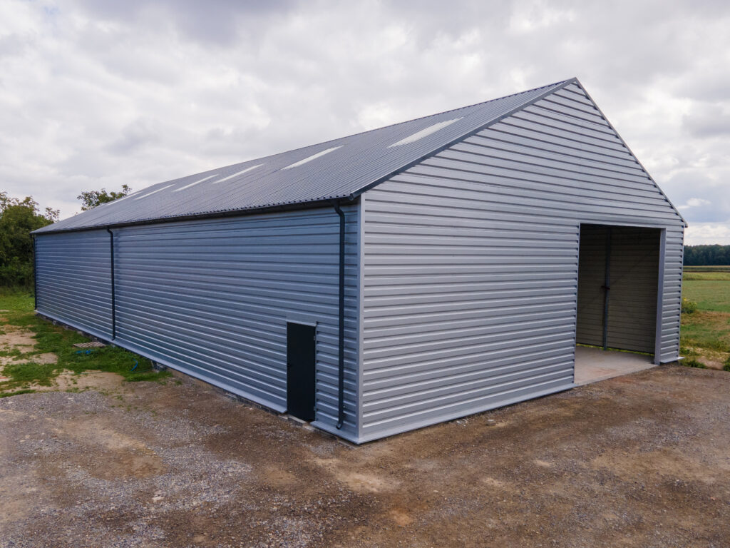Die Blechhalle misst 15×30×4,8/8,3 m und hat eine Fläche von 450 m². Die Anlage ist mit 5,5×4,5 m großen Schiebetoren, technischen Toren, Oberlichtern und langlebigen Trapezblechverkleidungen ausgestattet. Die feuerverzinkte Stahlkonstruktion garantiert Langlebigkeit und Sicherheit.