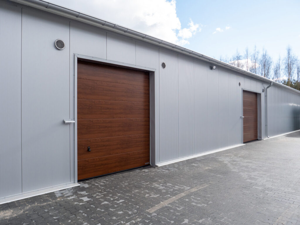 Die Lagerhalle besteht aus einer robusten feuerverzinkten Stahlkonstruktion, die mit Sandwichpaneelen verkleidet ist. Dank der Vollverkleidung ohne Dachfenster und Oberlichter gewährleistet die Anlage stabile Innenbedingungen und schützt die gelagerten Rohstoffe vor Lichteinflüssen und wechselnden Wetterbedingungen. Ein Sektionaltor ermöglicht ein bequemes Be- und Entladen der Materialien.