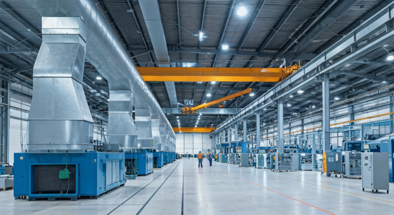 Ventilation in a production hall plays a crucial role in maintaining clean air and working comfort. These systems eliminate contaminants, such as dust or chemical fumes, which significantly increases safety, protecting the health of employed individuals. Furthermore, well-designed ventilation contributes to better production efficiency. Thanks to it, the hall maintains an appropriate microclimate, which allows employees to operate in favorable conditions. This directly translates into their effectiveness and a reduction in the risk of occupational diseases.