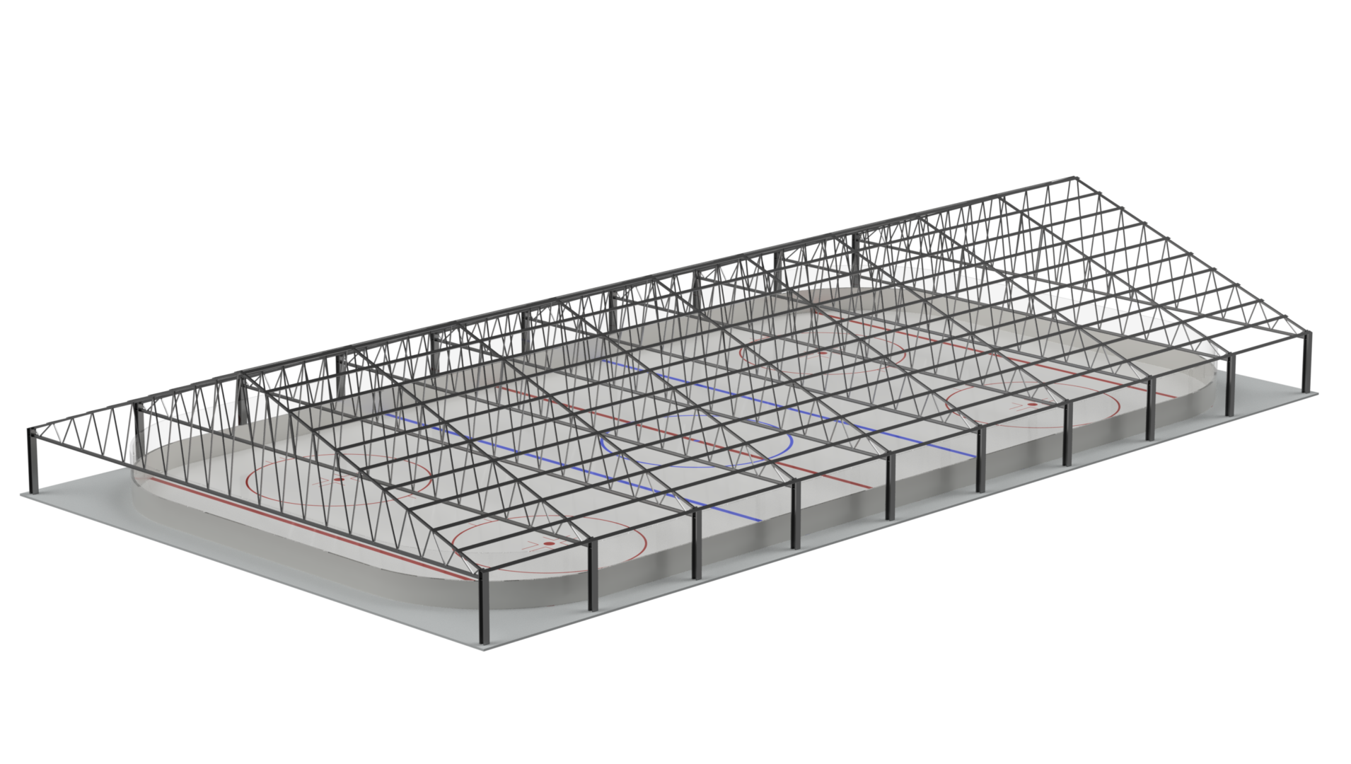 Vi utformar hallarna individuellt för den plats där projektet ska genomföras - vi tar hänsyn till lastzoner, spännvidder och ishallens hela infrastruktur.